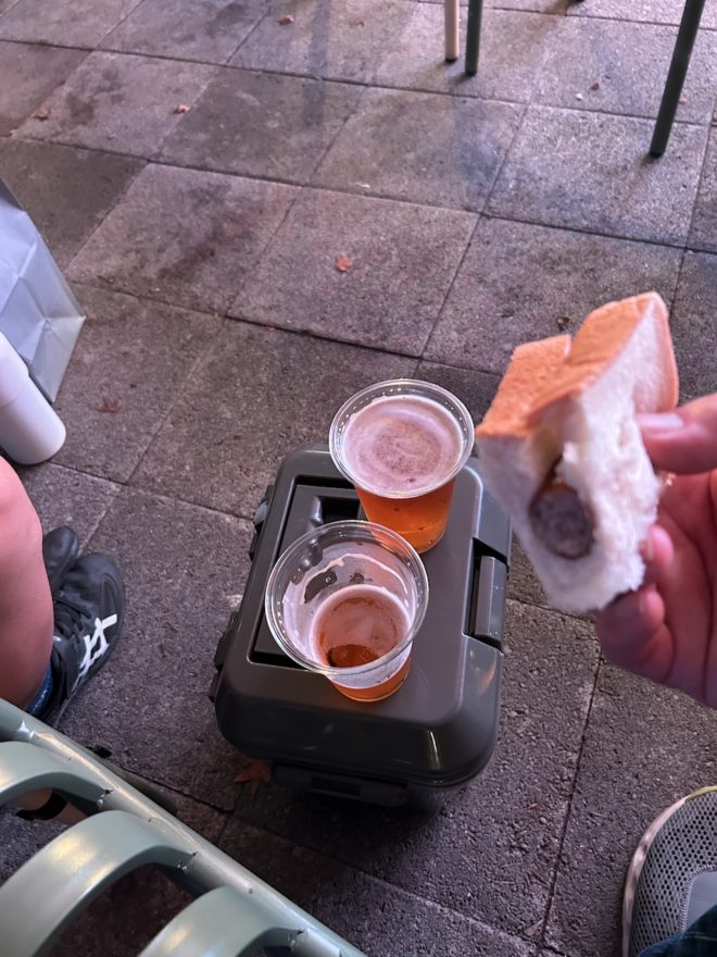 そして旅のハイライトは、蒸し暑い夕暮れ時に訪れたドイツパビリオン。 冷たいドイツビールと本場のソーセージが、疲れた体に染み渡る美味しさ! 家族全員が「これ最高!」と大絶賛で、万博の締めくくりにぴったりでした。