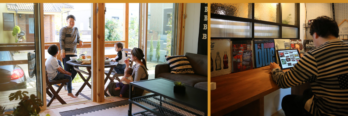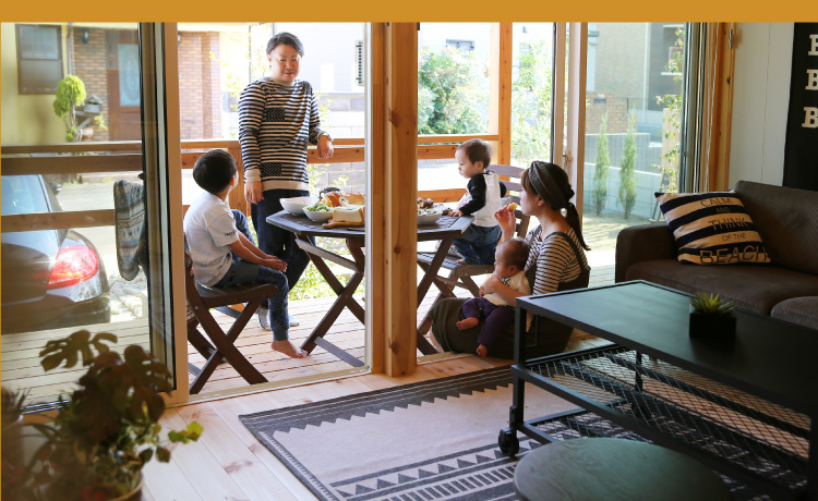 内と外をつなげるオープンデッキで、風景を眺めてリラックスしたり、家族や仲間とガーデンパーティーを楽しめます。