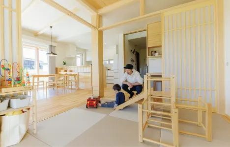 - 椅子でも床でもない、ちょうどいい居場所の小上がり畳スペース