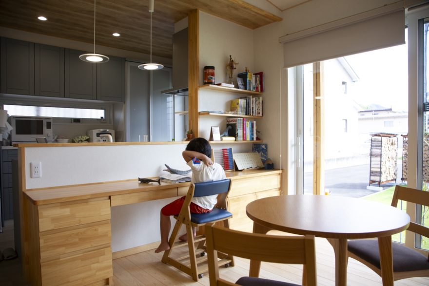 「ただいま」のあとすぐに宿題を始められる、家族の距離感を大切にした場所です。